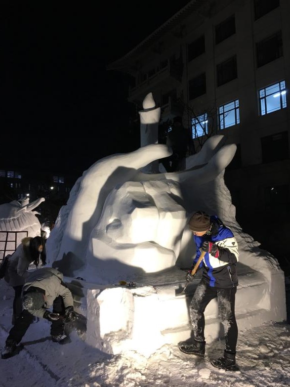 值得一提的是,雪雕制作既强调设计能力,又要求动手能力,且是在气温零下20多度的室外进行,这对都是“头一次”参赛的同学们来说提出了不小的挑战。加上比赛适逢考试周,备考和备赛同时进行,更加大了参赛难度。面对挑战,同学们坚定信心,迎难而上,在实验室里加强训练,在赛场更是实地反复操练,本次比赛取得了参加此项赛事以来的最好成绩,充分展现了东华学子积极向上、追求卓越的精神品质。