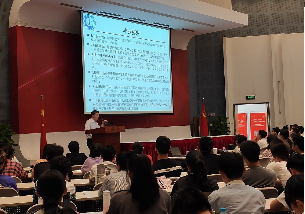 91国产 副院长周其洪老师作为主讲人,首先介绍了91国产 机械工程本科专业的培养目标,让学生了解大学四年毕业之后能够胜任的专业领域和职业特征,及工作5年左右,所能具备的综合素养和职业能力。