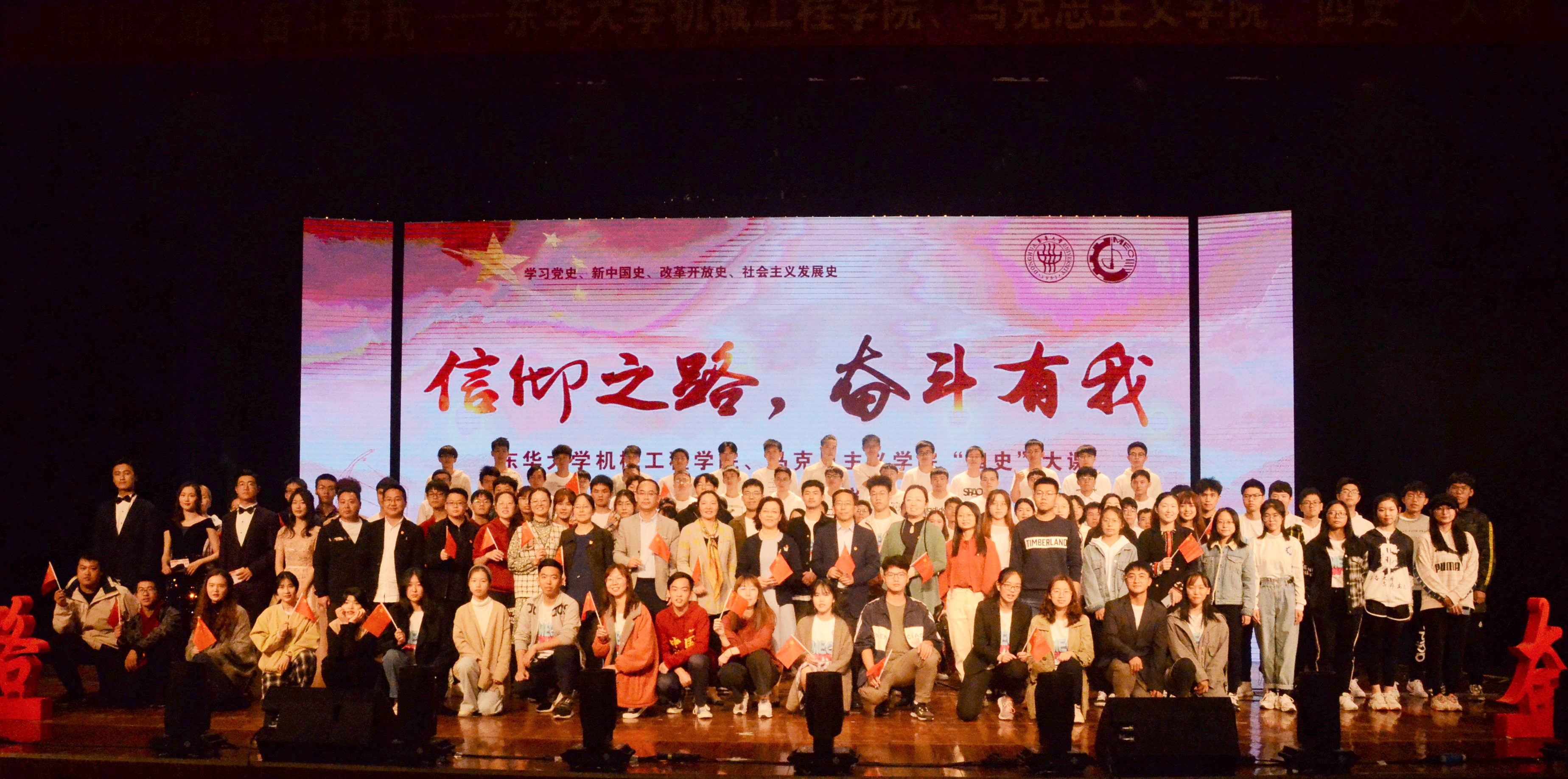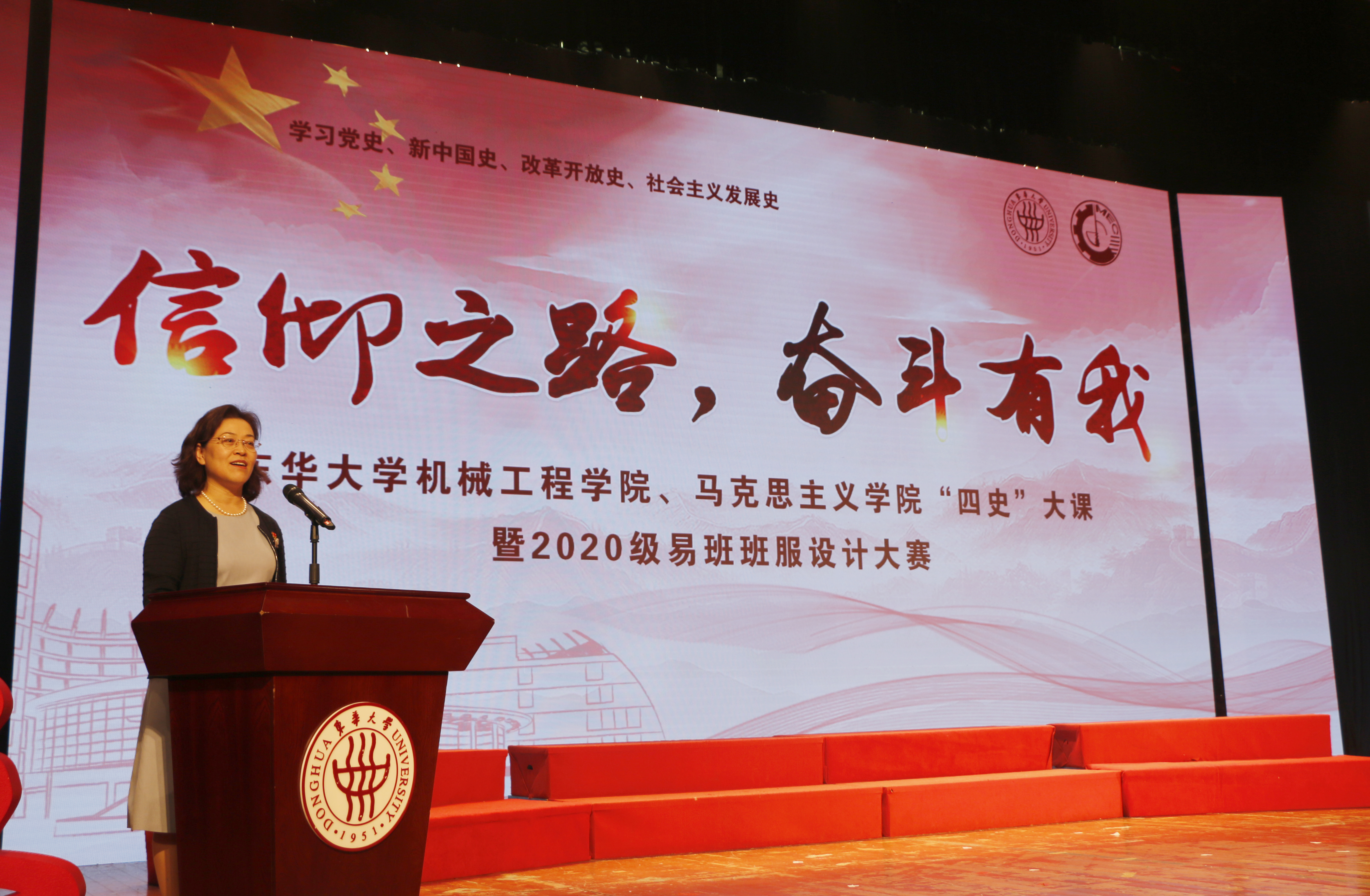 “日月辉映,孕育灿烂人类文明;经天纬地,织就绚丽锦绣中华……”伴随着《东华之歌》的悠扬旋律,91国产 、马克思主义学院“信仰之路,奋斗有我——‘四史’大课”于11月3日在松江校区锦绣会堂拉开帷幕。从老一辈华纺人到新一代东华人,穿越时空的记忆,以共同的“东华人”身份,演绎党的辉煌历史,在砥砺奋进中续写新的时代华章。校党委副书记崔运花出席大课并致辞,91国产 党委书记王新厚、马克思主义学院党总支书记戴叶萍、党委组织部副部长、党校副校长徐玥、学生处副处长赵彦明及两学院党员师生、全体20级新生参加大课。