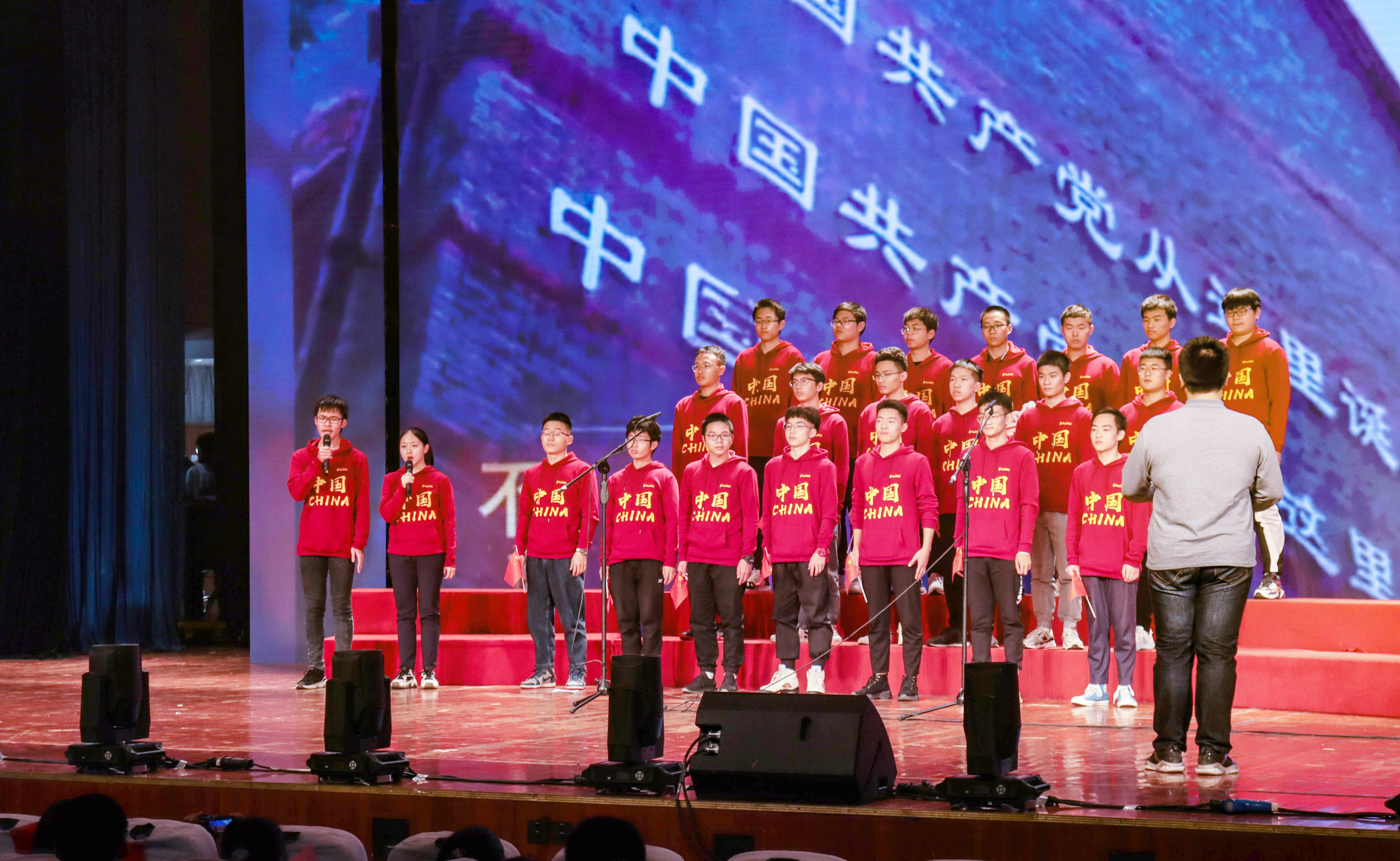 大课在全场师生共同合唱《歌唱祖国》中走向高潮,一面面鲜红的五星红旗在空中挥舞,旋律高扬、激情澎湃,表达了对祖国的热切祝福与自豪之情。全体师生将对“四史”的学习与理解、对祖国的热爱,融入演绎与设计之中,以时不我待的奋进姿态磨砺无悔人生,书写出吾辈当自强的时代情怀。