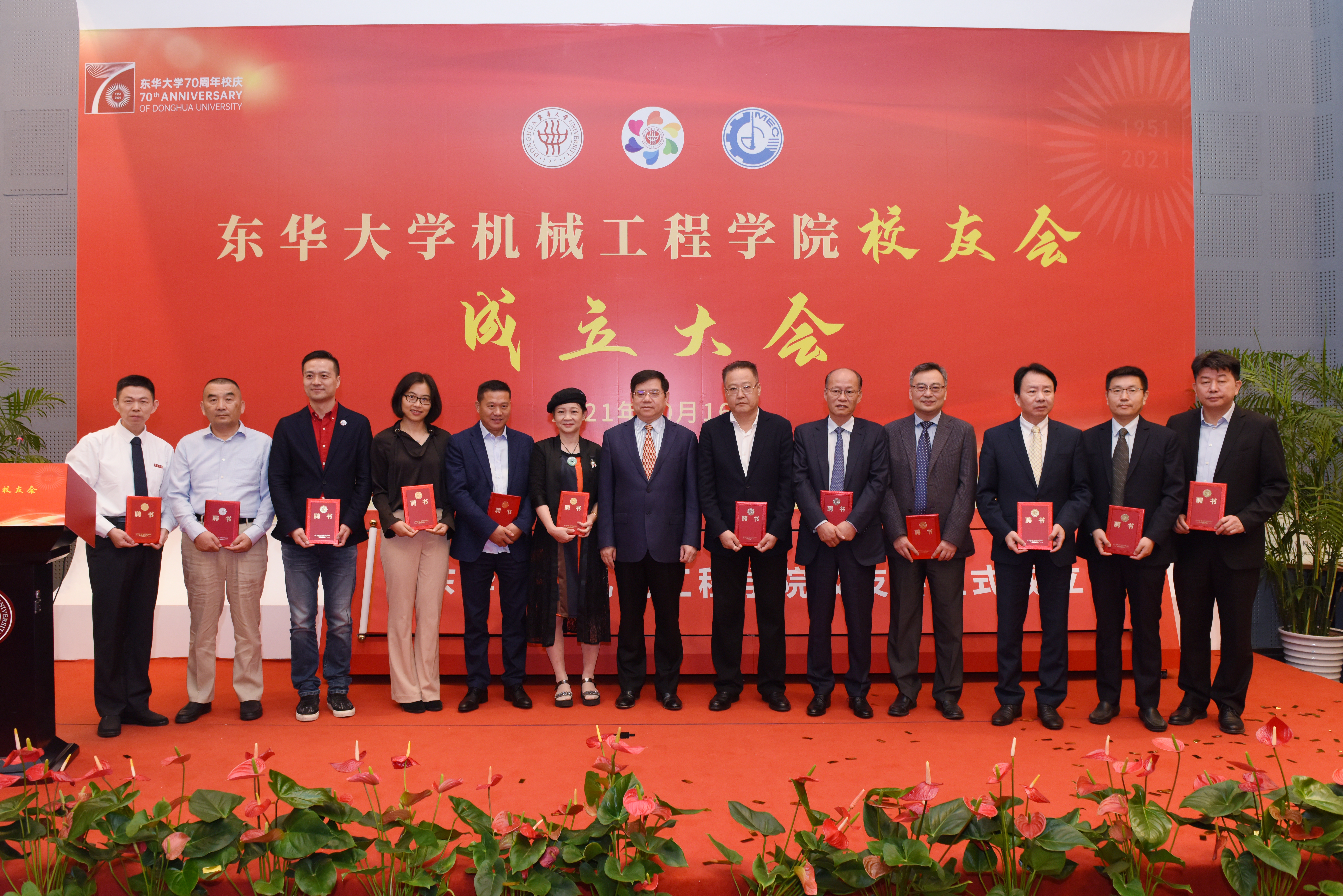 在迎来东华大学70周年校庆之际,机械工程学院也迎来了建院70周年,10月16日,机械工程学院校友会成立大会在松江校区召开,上海市政协原副主席、民建中央原副主席黄关从,东华大学原校党委书记丁证青,上海市教育工会副主席吉启华,东华大学副校长陈革,东华大学校董、中国华建投资控股有限公司董事长何志平,东华大学原校党委副书记浦解明,东华大学原副校长朱世根,东华大学原副校长刘春红,东华大学校友会秘书长吴保根,学院党政班子成员,各系教师代表以及来自全国各地百余名校友与会。