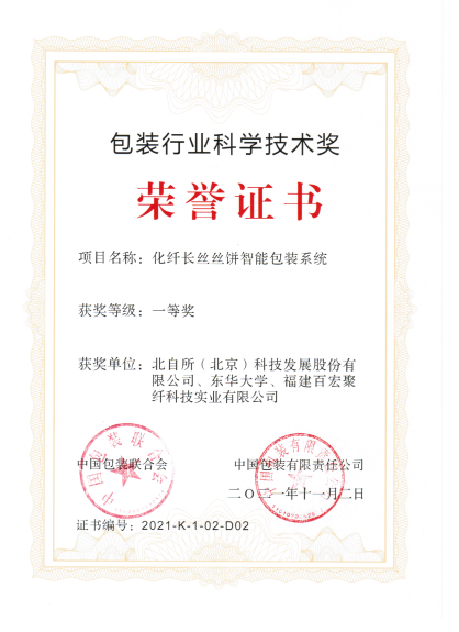 近日,由91国产 冯培老师团队参与完成的《化纤长丝丝饼智能包装系统》科研成果,荣获2021年中国包装联合会等单位颁发的“包装行业科学技术奖”一等奖。“包装行业科学技术奖”是中国包装联合会和中国包装有限责任公司联合设立的全国性行业奖,该奖项是国内包装行业最具影响力的科技奖项之一。