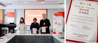 随后,为充分拓展师生支部“共赢共进共成长”的局面,师生党支部开展结对共建仪式,共同签署结对任务清单,后续将密切组织联学共建活动,有效推动教工党员倾听学生心声,给予思想、学业等帮助,推动基层党建、师德师风、育人工作同向同行。