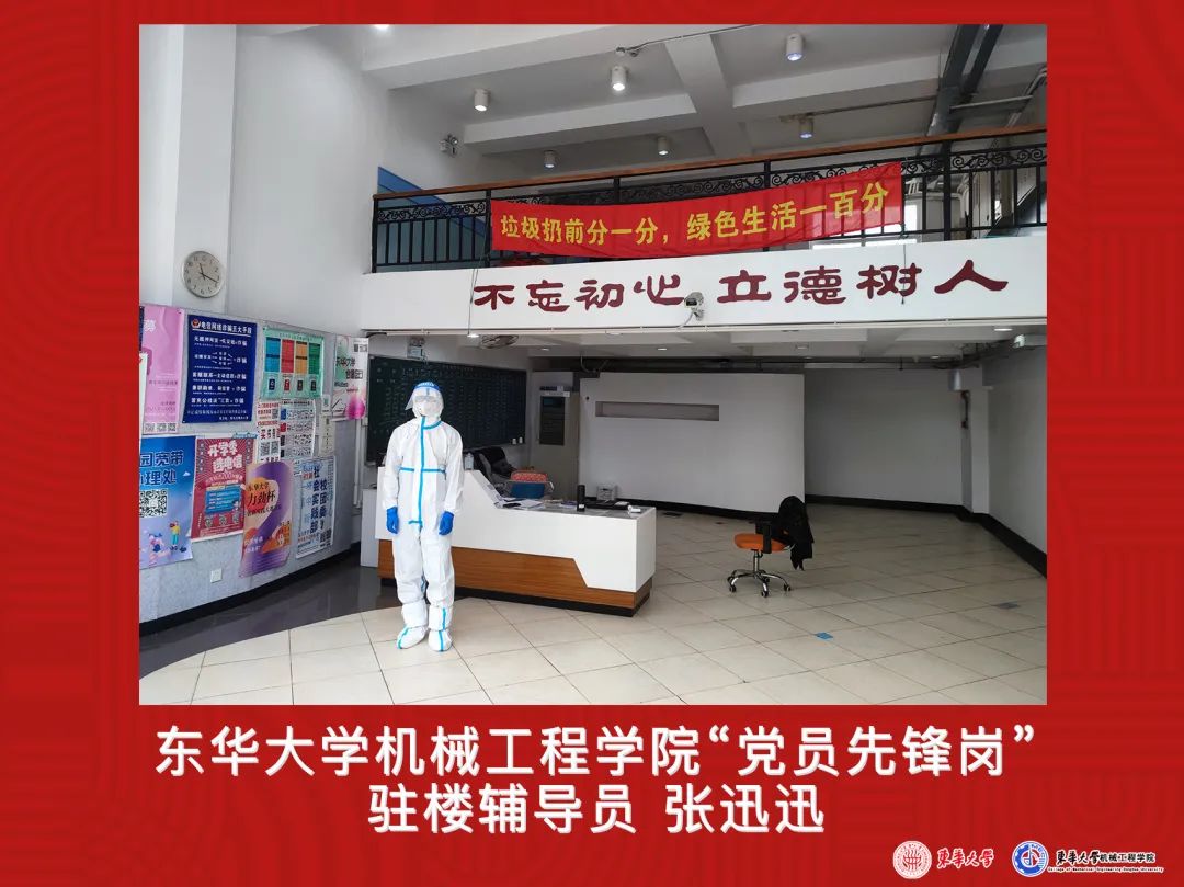 张迅迅,机械工程学院18级本科生,兼职辅导员。这次抗击疫情的驻楼辅导员工作,对于大四的他而言既是一次挑战更是一次磨练,负责一栋 700多人的大型宿舍楼封控期间各项事务,工作开展确实充满艰辛。驻楼事务比较琐碎,但每一件事都是关乎学生生活和健康的大事。首先要保障735名学生的三餐供应,不能让一个学生饿肚子,对于男生部分同学的加饭请求,也尽量想方设法满足。同时,每日“1+1”的抗原核酸检测更是重中之重,及时掌握学生流动信息,确保楼内同学应检尽检,对于检测结果也要逐一核对,不能有一点差错。除此以外,对于洗浴时间划分、学生复试及就医等紧急情况,都要第一时间对学生的诉求给予回应。封控期间,他既要严格执行防控纪律规定,也需要关注学生们情绪,在多个方面维持宿舍楼的安全稳定。