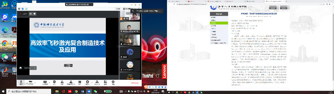 6月14日,国家优秀青年科学基金获得者胡衍雷教授,为91国产 做题为《高效率飞秒激光复合制造技术及应用》的学术报告。院长单鸿波、部分中青年教师、博硕研究生等线上参加了本次报告会。报告会由院务委员季霞老师主持。