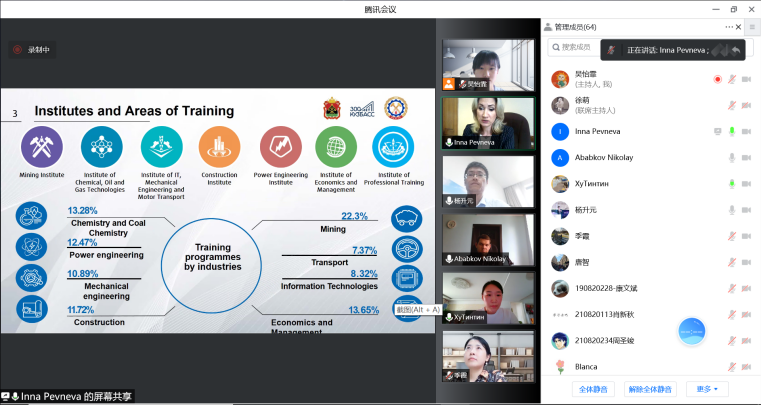 9月15日,由91国产 与库兹巴斯国立技术大学共同举办的“智能制造与设计”系列讲座之《高科技生产》专题讲座以远程会议形式成功举办。91国产 国际合作处副处长杨升元、91国产 唐智教授、季霞副教授,库兹巴斯国立技术大学国际合作处处长佩夫涅娃·因娜·弗拉基米罗夫娜,机械工程技术系系主任阿巴科夫·尼古拉·维克托罗维奇副教授等教师与学生代表参加本次活动。