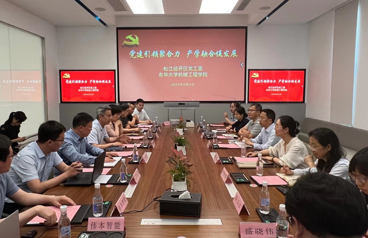 6月2日下午,东华大学机械工程学院党委书记王新厚、副书记杨蓉带领学院教师代表赴国家级上海松江经济技术开发区开展专题调研产业集群与人才状况,了解产业一线对人才的切实需求,加强对学科发展、人才培养与就业工作的研究思考。松江经开区党工委副书记顾文磊,经开区党工委委员、人大工委副主任杨茜陪同。