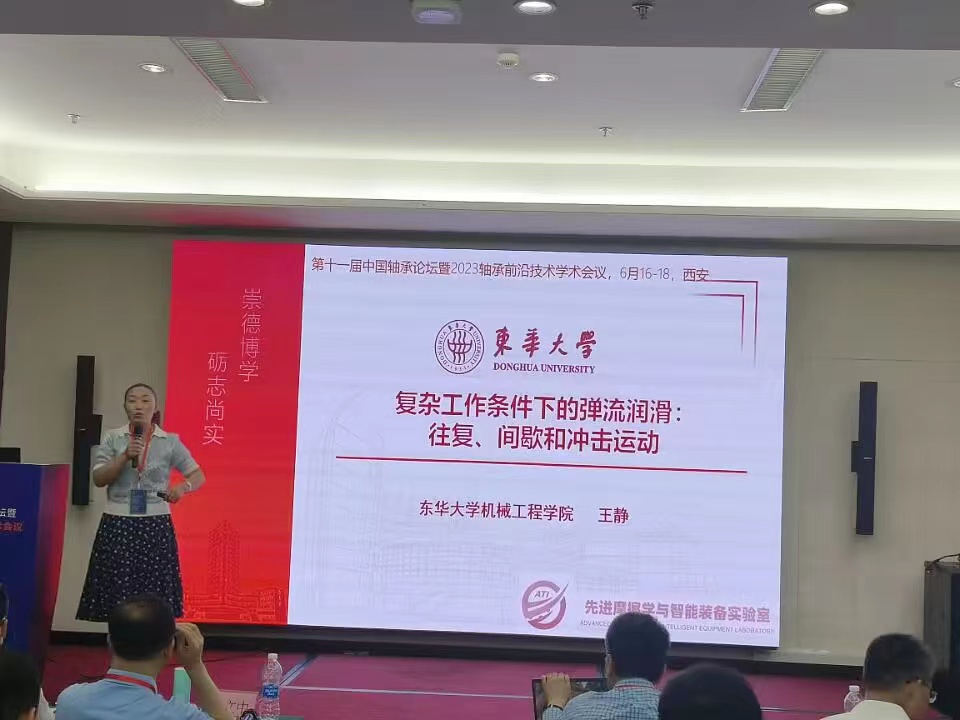 会议组委会根据“轴承摩擦学与润滑理论,轴承设计理论与方法,轴承应用与新技术研发和轴承材料、制造与测试技术“四个主题,安排了会议论文报告交流环节,91国产 先进摩擦学与智能装备团队负责人、《轴承》杂志编委王静教授作了题为《复杂工作条件下的弹流润滑:往复、间歇和冲击运动》报告,介绍了所在团队最近几年来在摩擦学与润滑理论的最新研究成果,引起了广泛关注。