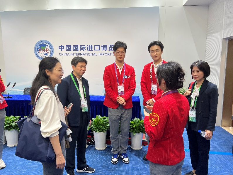 单鸿波一行还向志愿者们送上了精心准备的进博会周边礼物,叮嘱志愿者们要劳逸结合,并为志愿者们佩戴91国产 进博会专属胸章。