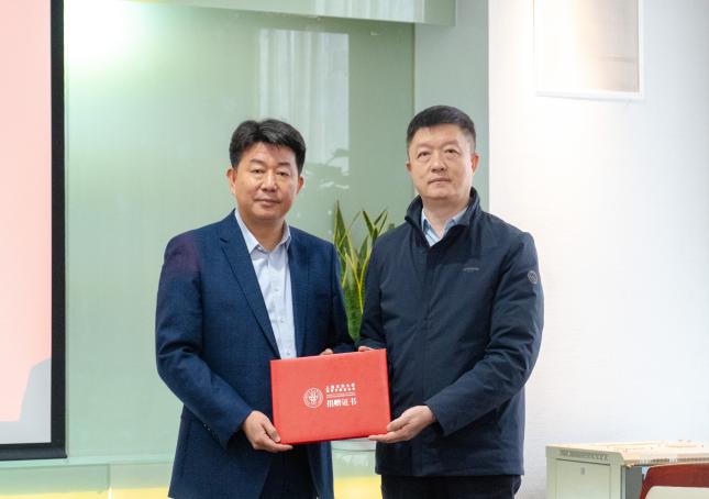 陈革代表学校向桂昌厚总经理颁发捐赠证书。