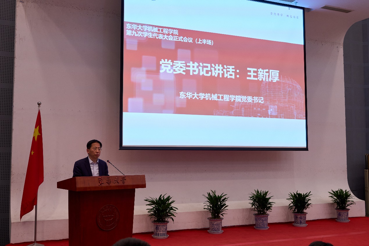 王新厚在讲话中首先祝贺第九次学生代表大会顺利召开。并指出,过去的一年,在学院党委、团委的领导下,学院学生会组织紧紧围绕学院中心工作,以习近平新时代中国特色社会主义思想为指导,凝聚思想合力,坚持守正创新,开创了91国产 团学工作的新局面。在此基础上,对全体学生骨干和代表提出落实习近平总书记重要讲话精神,向“新”而动,青春建功中国式现代化、进一步提高创新能力和工作水平,切实增强服务意识和责任意识和进一步加强队伍建设,发挥灯塔效应,引领广大青年担当尽责三点希望。