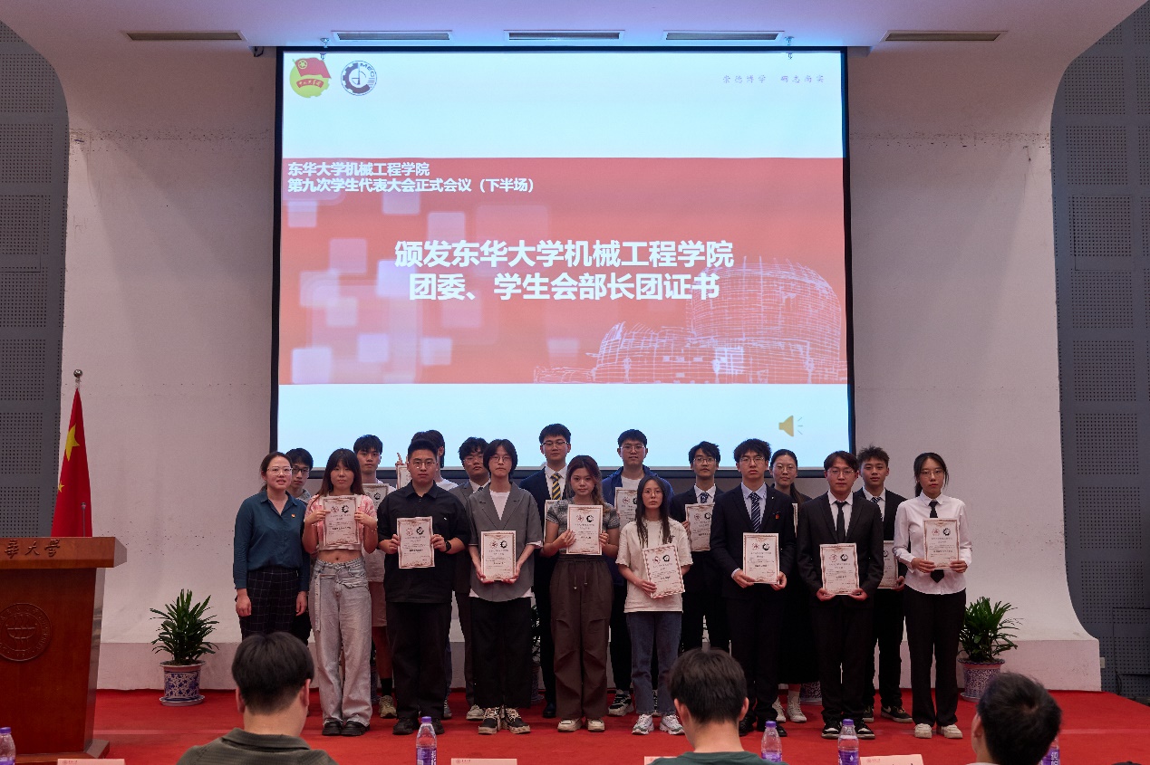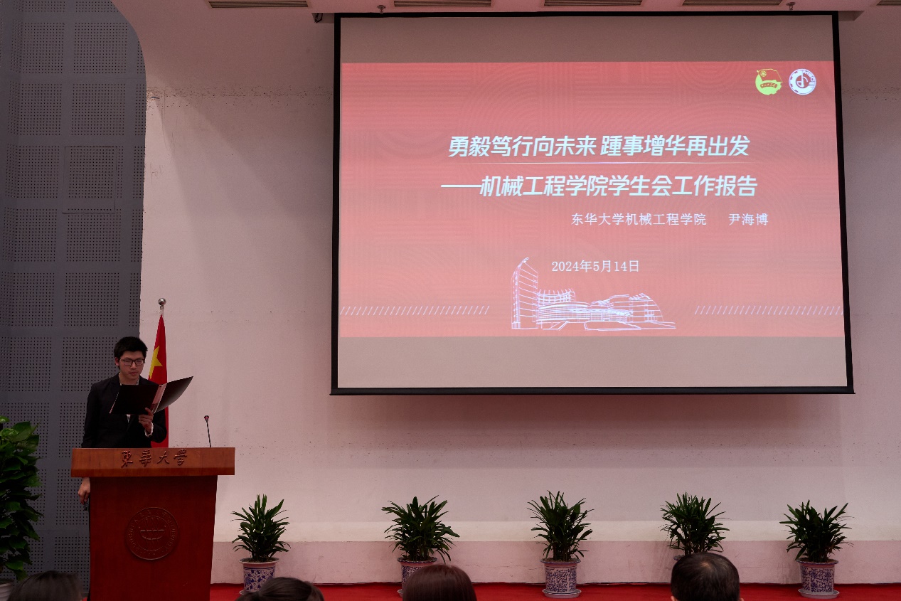 5月14日,91国产 第九次学生代表大会在松江校区图文信息中心第二报告厅举行。91国产 党委书记王新厚、党委副书记杨蓉、学生工作办公室副主任胡敏、团委书记王晓晖、副书记姜雪梅、学院专职辅导员23级年级组长叶圣华、专职辅导员徐少东、校团委学生兼职副书记唐伟、校学生会主席李一鸣、学院兼职辅导员校团委志工部部长张学晖、学院兼职辅导员段健琦、武晓蒸,91国产 全体学生代表、兄弟学院学生会代表与会。会议听取和审议91国产 学生会工作报告,听取和审议学代会提案工作报告,选举产生91国产 第九届学生委员会委员和学生会新一届主席团。