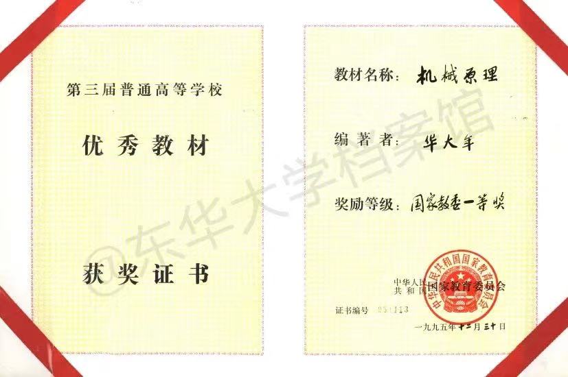 作为机械工程学院基础课的任课老师,我认为,任何理论转化为方法论才能有效地运用于实际,进行发展和完善,机械原理作为机械科学与工程的科学理论,也应该转化为相应的方法论。结合自身教学和实践经验,我认为机械学科不能没有理论课、原理课,这个想法成为了我编写《机械原理》教材的突破口。在编写教材时,我以唯物辩证法为指导,总结和发展了机械原理的研究方法,提出将当量法及其派生方法作为机械原理的基本研究方法,形成了机械原理方法论。《机械原理》一书凝结了我多年教书的心得:在辩证唯物主义的指导下,实现两个“转化”,即教师由“教”到“授”、学生由“学”到“创”,从而启迪学生的创意创新思维。1995年,《机械原理》教材获国家教委优秀教材一等奖。在上列著作中,我将机械原理研究的当量法应用于连杆机构和凸轮机构的计算机辅助设计,其中原创的凸轮设计新方法和新方程式,四十年来仍在为社会服务,为东华增光。从1979年起,我增加指导硕士研究生工作,直至1994年退休。