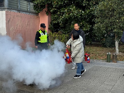 吕明权对学院师生进行了消防安全知识培训。培训内容涵盖火灾的预防措施、如何识别火灾隐患、正确使用灭火器以及逃生时的注意事项等,详细讲解了常见手提式干粉灭火器、二氧化碳灭火器的使用方法,并通过实操形式进一步展示使用细节和注意事项。师生们在培训中认真听讲,积极参与互动,学习到了宝贵的消防安全知识。