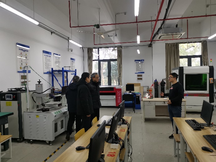 随后,单鸿波一行来到了工程训练中心,详细查看了各类实验设备的运行情况,询问了训练课程的安排和学生参与度。他强调,工程实践能力对于机械专业学生至关重要,希望能够通过不断完善设施和设备,为学生提供更好的实训环境。