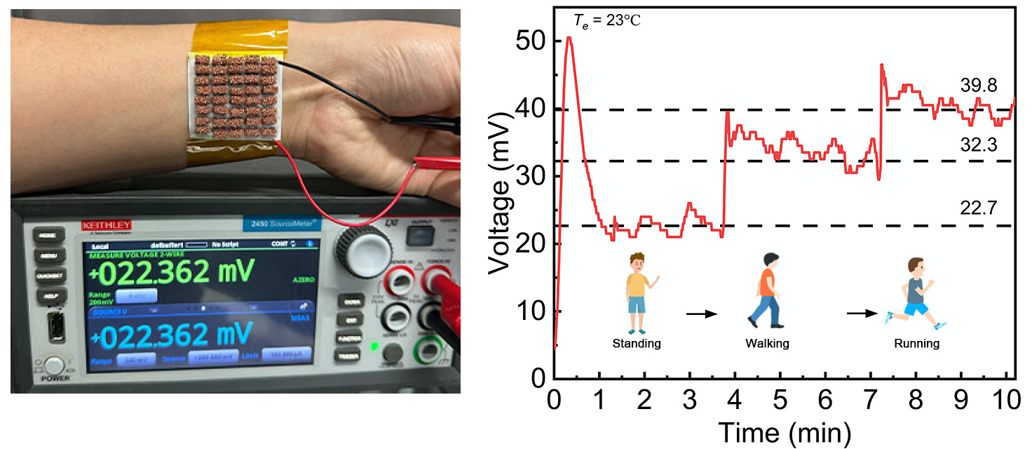 在Thermal Science and Engineering Progress上,团队设计并制备了一种集成式泡沫铜电极与嵌入式复合柔性基底的柔性热电发电器,实现了高效人体热能收集,在运动过程中持续稳定供能,展示了在可穿戴电子、健康监测和自供能系统中的巨大应用潜力。(//doi.org/10.1016/j.tsep.2025.103750)
