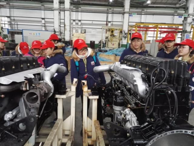 卓越机械1401团支部成员在湖北十堰东风汽车发动机厂参观学习