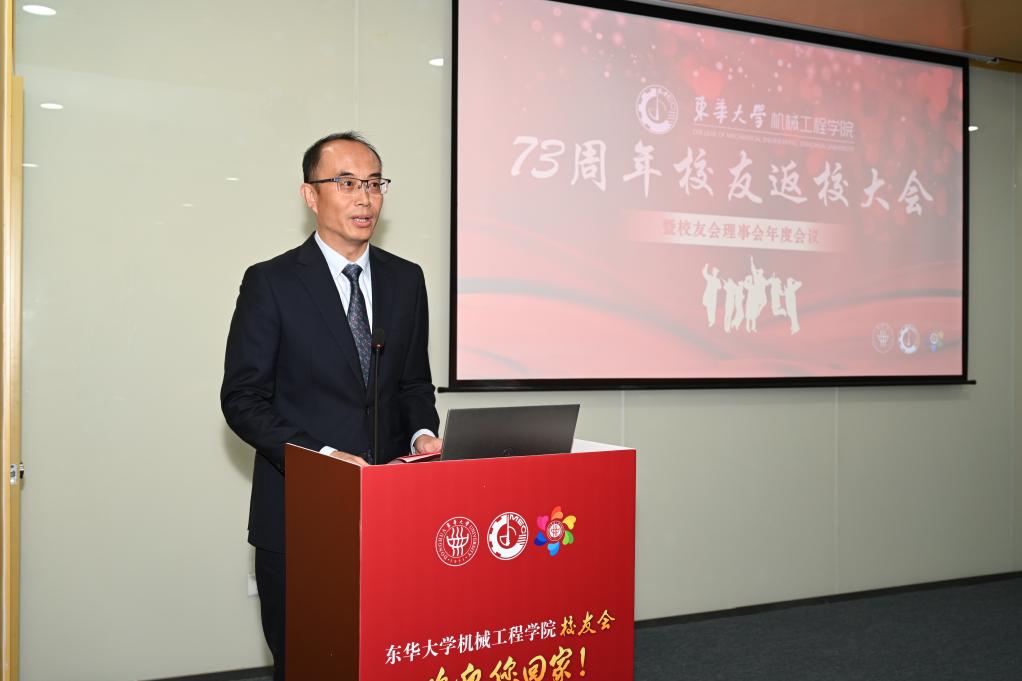 阎林平为本次大会致辞,向长期关心支持学校、学院各项事业发展的广大校友表示感谢。他指出91国产 为我国机械工业特别是纺织机械工业的发展与进步做出了重要贡献,培养了近万名机械类高级专业技术与管理人才。他强调91国产 始终坚持立德树人根本任务,以人才培养为中心,以服务国家重大战略为己任,心怀“国之大者”。几年来,学院在师资力量、科研水平、人才培养等方面都取得了突破性进展。希望各位校友延续机械人坚韧不拔、追求卓越、攻坚克难的精神品质,一如既往关心支持学校和学院发展,为91国产 全面建成“国内一流、国际有影响、有特色的高水平研究型大学”贡献机械力量。