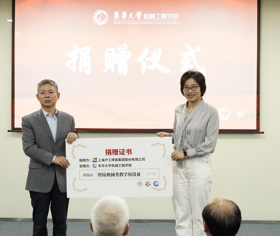 从2019年至今,上海沪工焊接集团连续6年捐赠20余万元在学院设立奖学金,用于奖励学院优秀学生。今年沪工集团又为学院捐赠一批焊机类教学设备,91国产 副院长周其洪接受捐赠。