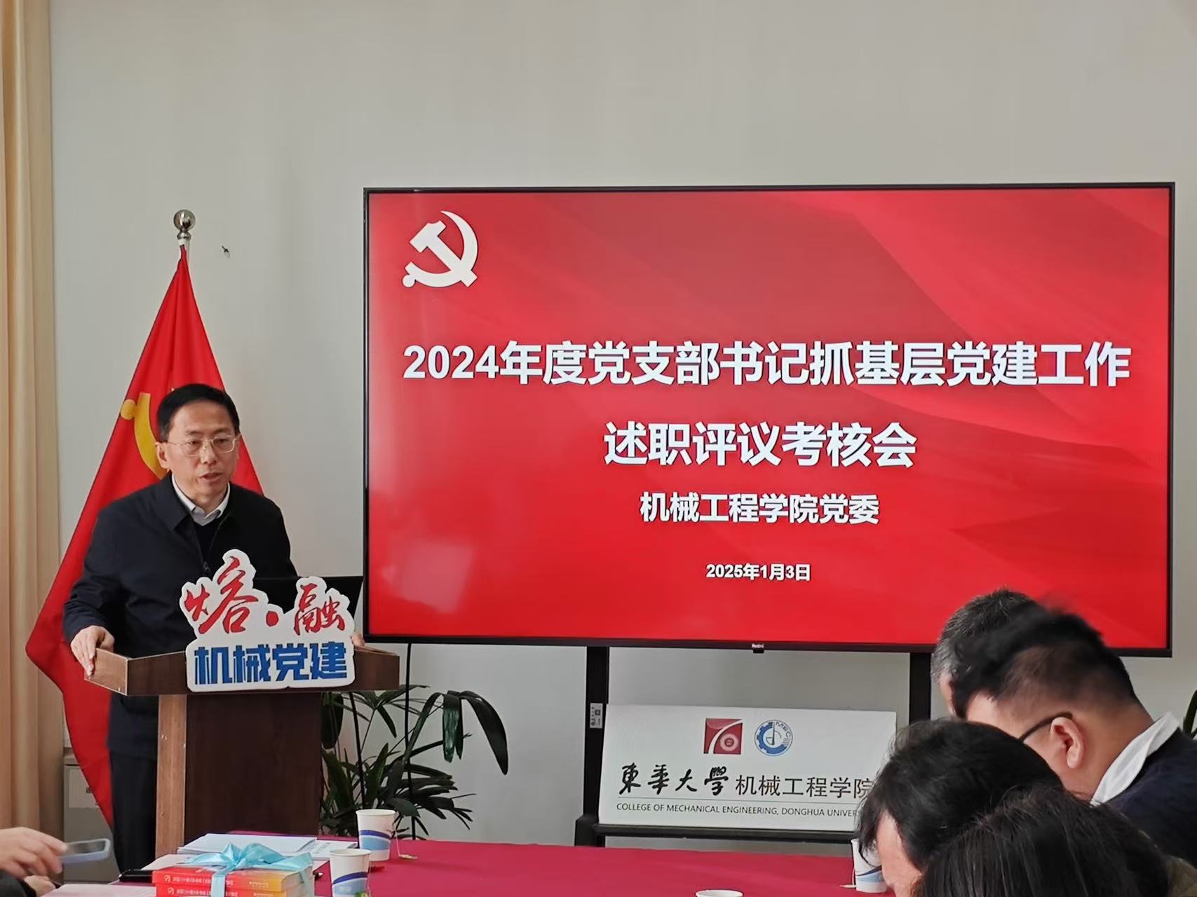 按照东华大学关于2024年度党组织书记抓基层党建工作述职评议考核的部署要求,2025年13日,机械工程学院党委召开2024年度党支部书记抓党建工作述职评议考核会议。会上,8位教工党支部书记、2位学生党支部书记进行现场述职,其他14位党支部书记进行书面述职。学院党委书记王新厚,副书记杨蓉,党委委员、副院长白涛,党委委员徐洋以及师生党支部书记出席会议。