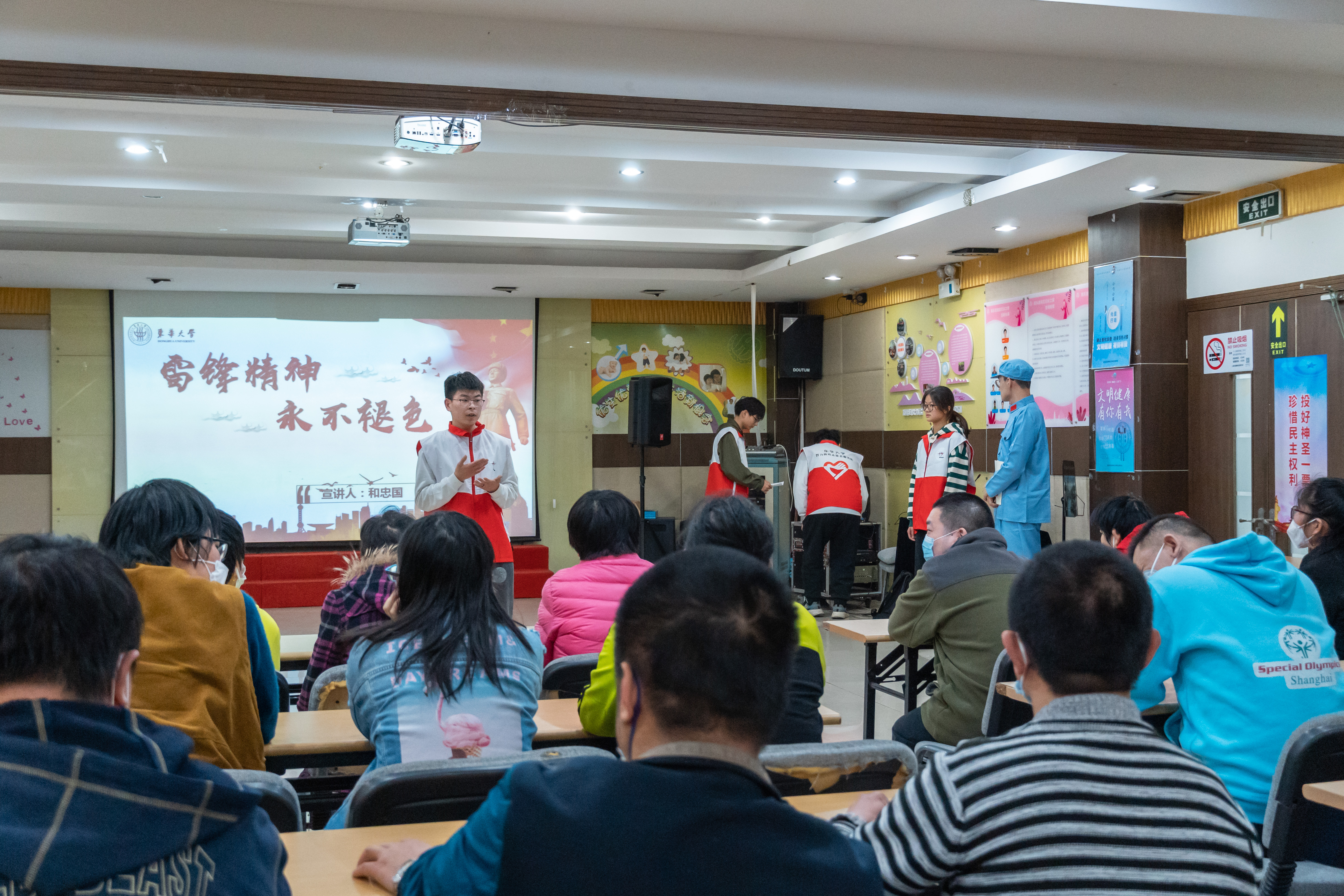 (智力助残志愿者为残障人士讲解雷锋精神)