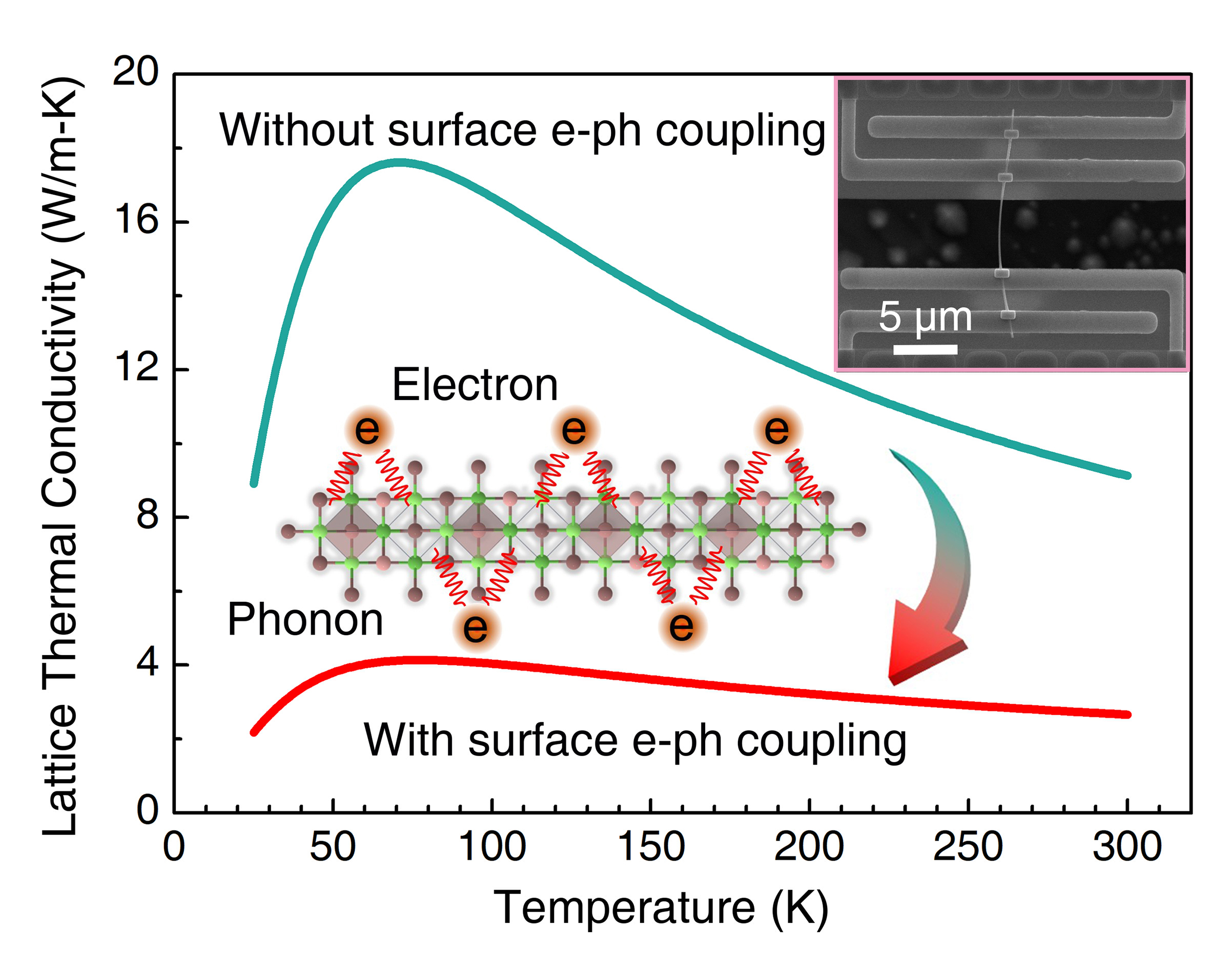 在Applied Physics Letters上,研究团队揭示了表面电子-声子相互作用可显著抑制InAs纳米线的晶格热导率,室温下降幅度高达73%。这一发现为通过表面态工程调控半导体热输运提供了全新思路,为新一代高效热电与微纳电子器件的设计奠定了实验基础。(//doi.org/10.1063/5.0277012)